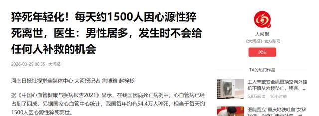 不少人觉得猝死是老年人的专属问题,年轻人身强力壮根本不用担心,这种根深蒂固的认知误区,恰恰让无数中青年陷入了致命的健康危机,也让猝死的阴影离普通人越来越近。